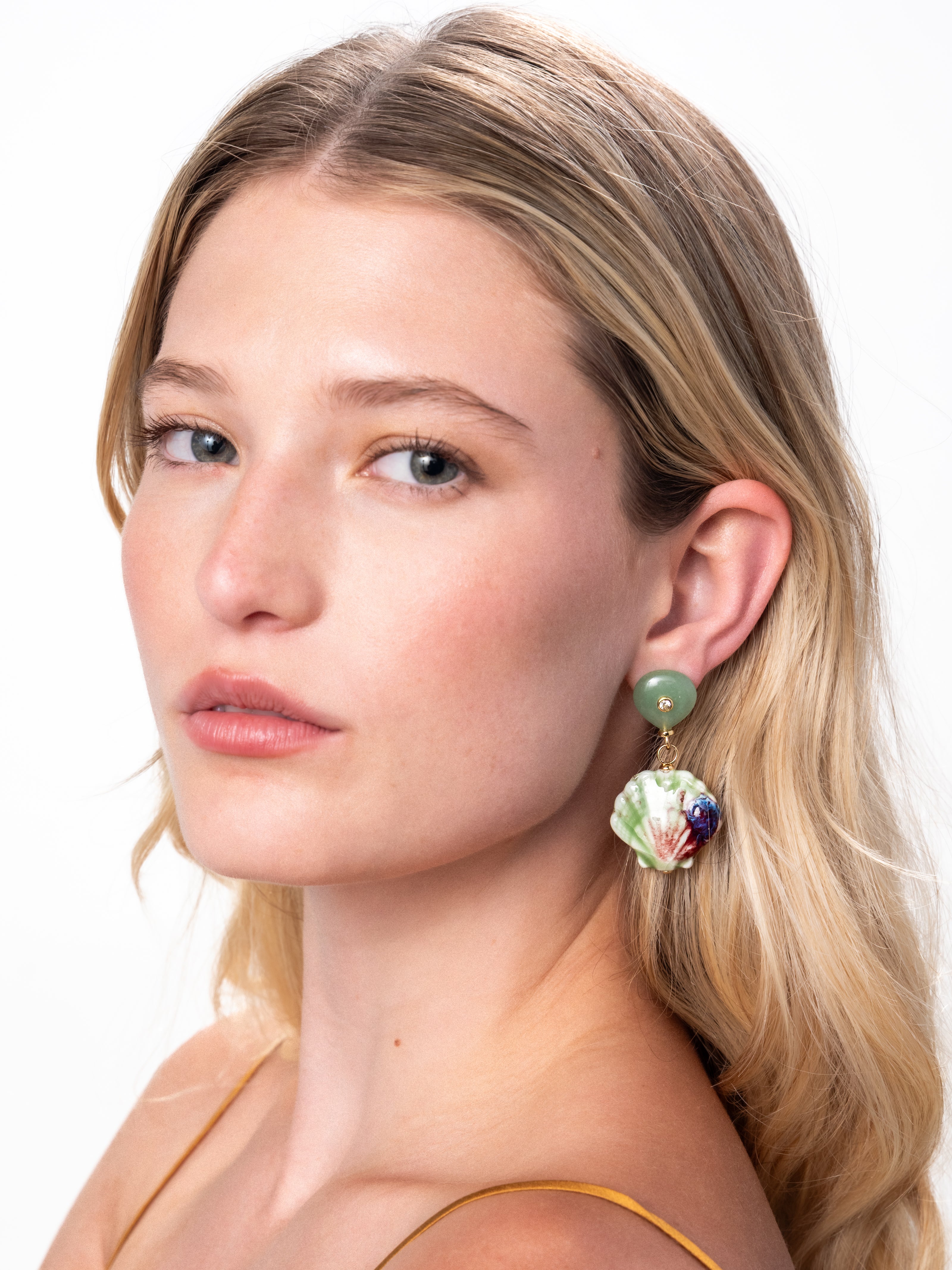Chrysolite stud with crystal detail on a beautiful ceramic shell creates a special statement earring perfect for the beach or a night out. This item is hand-made to order. Please allow up to two weeks for production.
